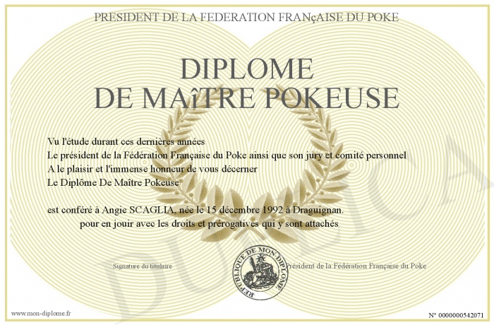 Envoyez par email votre Diplôme De Maître Pokeuse personalisé