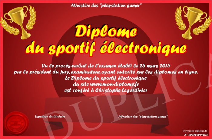 Envoyez par email votre Diplôme du sportif électronique personalisé