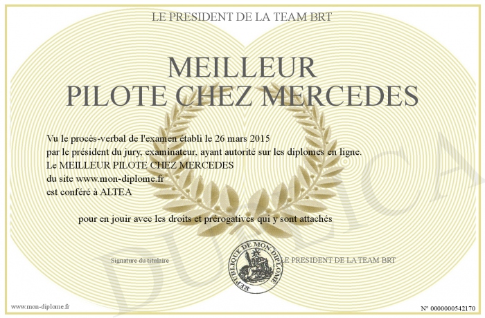 Envoyez par email votre MEILLEUR PILOTE CHEZ MERCEDES personalisé