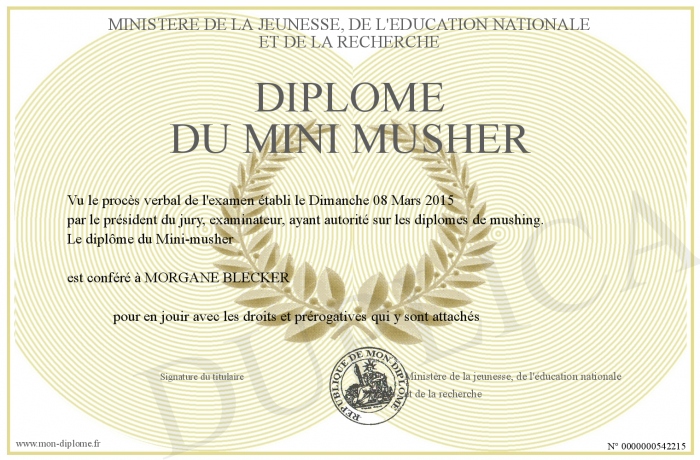 Envoyez par email votre Diplôme du mini musher personalisé
