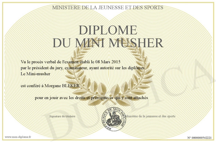 Envoyez par email votre Diplôme du Mini musher personalisé