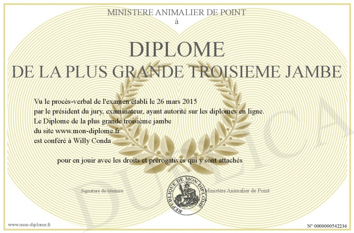 Envoyez par email votre Diplôme de la plus grande troisième jambe personalisé