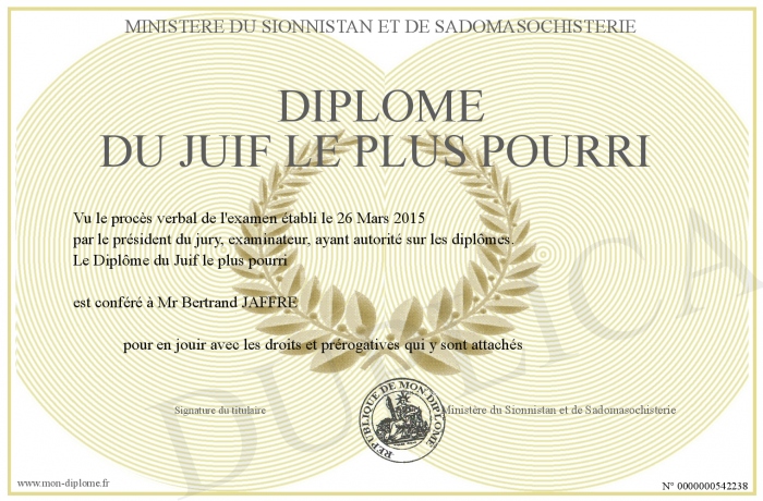 Envoyez par email votre Diplôme du Juif le plus pourri personalisé