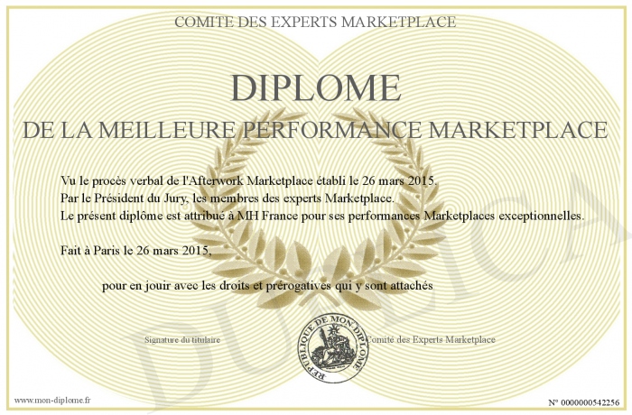 Envoyez par email votre Diplôme de la Meilleure Performance Marketplace personalisé