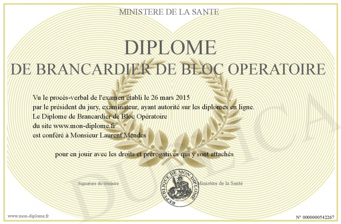 Envoyez par email votre Diplôme de Brancardier de Bloc Opératoire personalisé