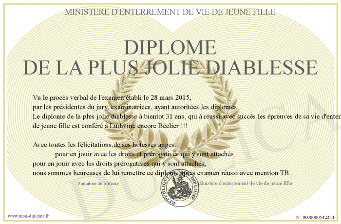 Envoyez par email votre Diplôme de la plus jolie diablesse personalisé