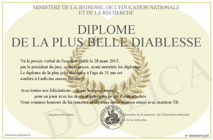 Envoyez par email votre Diplôme de la plus belle diablesse personalisé