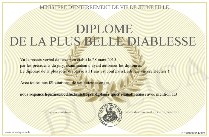 Envoyez par email votre Diplôme de la plus belle diablesse personalisé