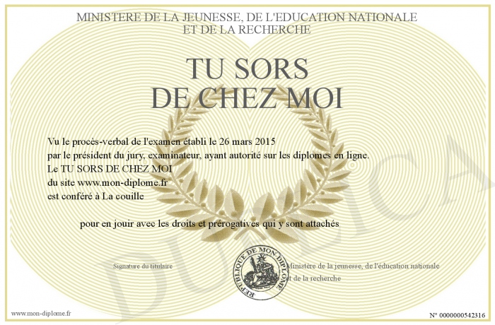 Envoyez par email votre TU SORS DE CHEZ MOI personalisé