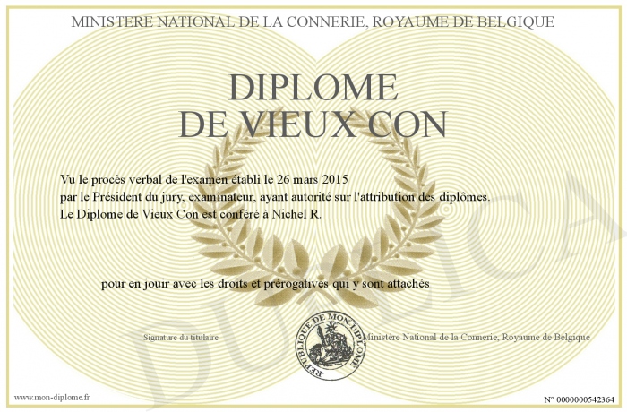 Envoyez par email votre Diplôme de Vieux Con personalisé