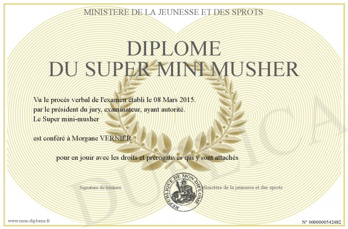 Envoyez par email votre Diplôme du Super Mini Musher personalisé