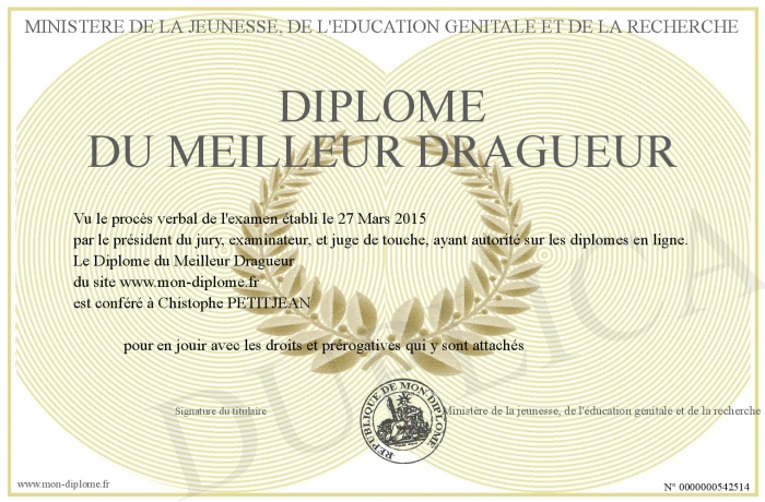 Envoyez par email votre Diplôme du Meilleur Dragueur personalisé
