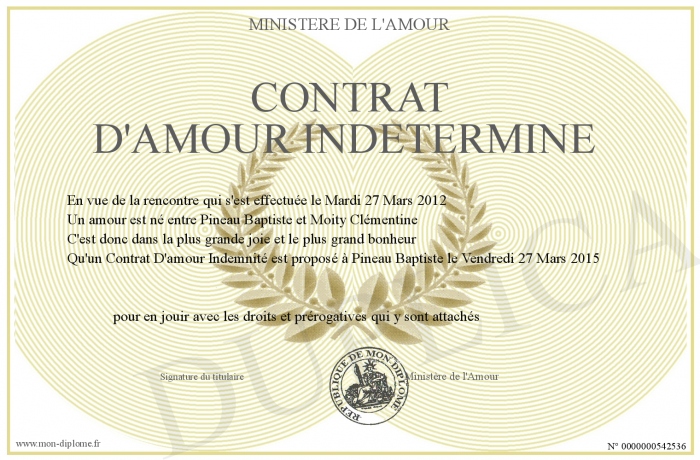 Envoyez par email votre Contrat D'amour Indéterminé personalisé