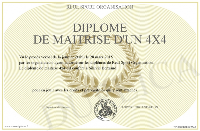 Envoyez par email votre DIPLOME DE MAITRISE D'UN 4X4 personalisé