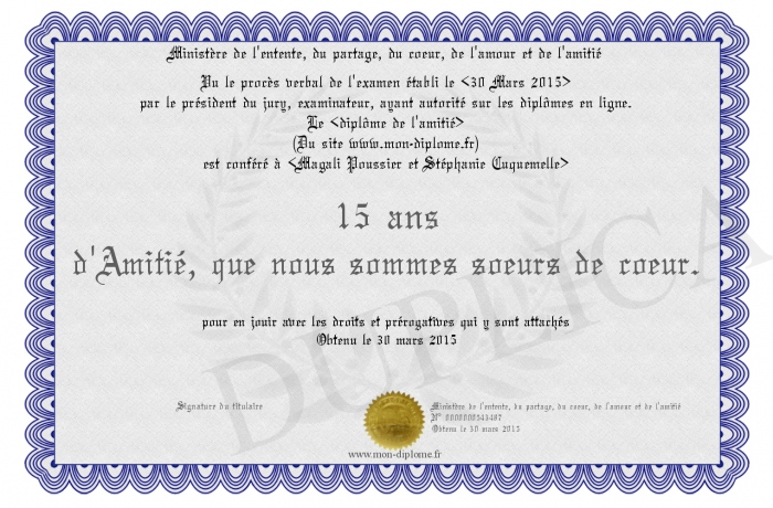 Envoyez par email votre 15 ans d'Amitié, que nous sommes soeurs de coeur. personalisé