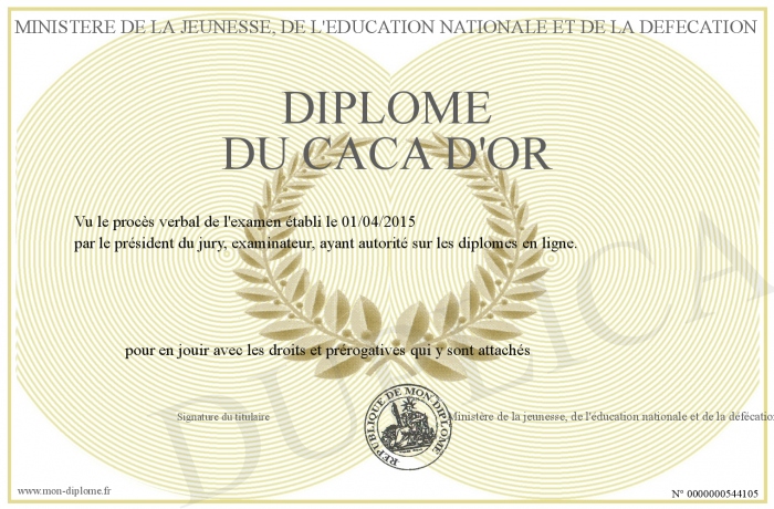 Envoyez par email votre Diplôme du caca d'or personalisé