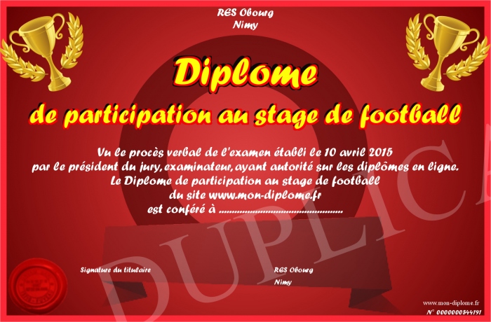 Envoyez par email votre Diplôme de participation au stage de football personalisé