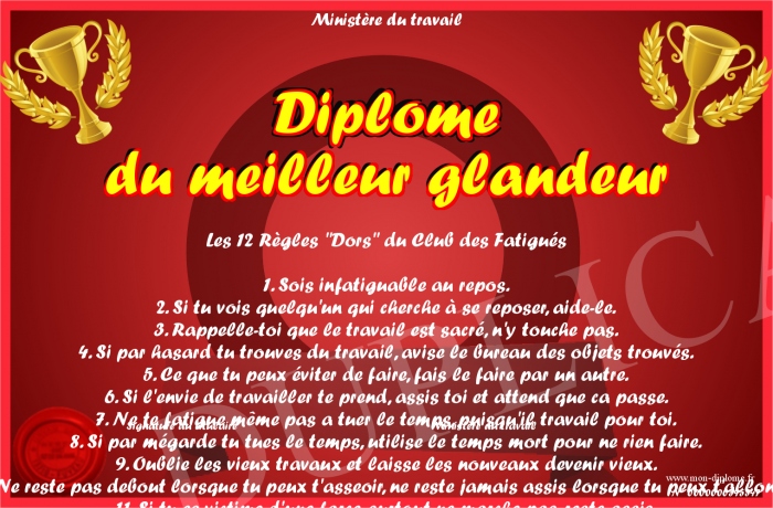Envoyez par email votre Diplome du meilleur glandeur personalisé