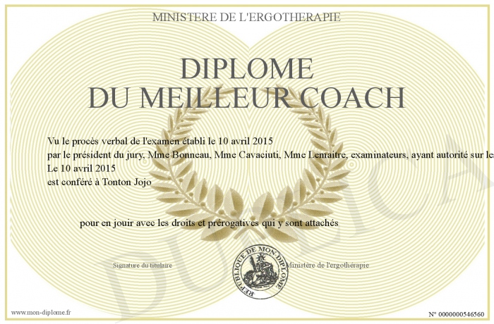 Envoyez par email votre Diplôme du meilleur coach personalisé