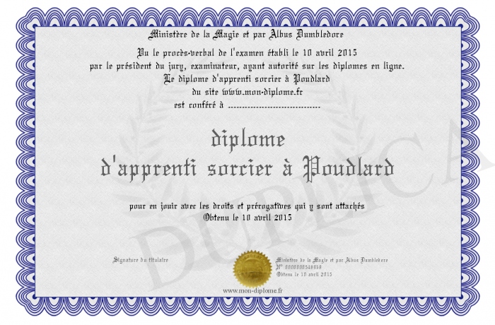 Envoyez par email votre diplôme d'apprenti sorcier à Poudlard personalisé