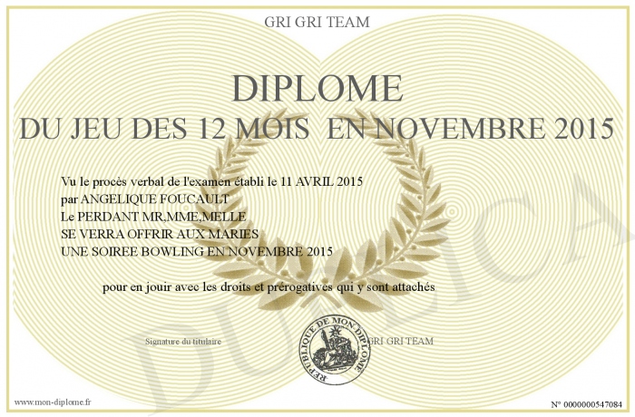 Envoyez par email votre Diplôme du jeu des 12 mois en novembre 2015 personalisé