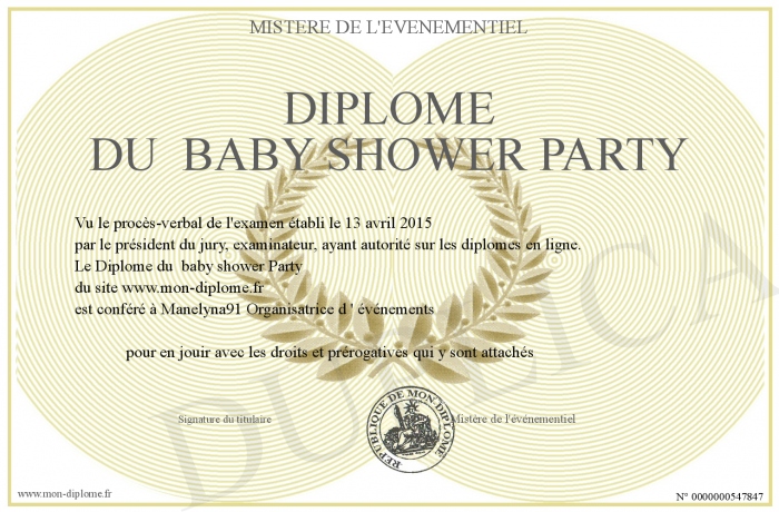 Envoyez par email votre Diplôme du baby shower Party personalisé