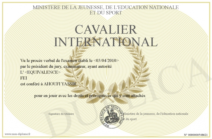Envoyez par email votre CAVALIER INTERNATIONAL personalisé