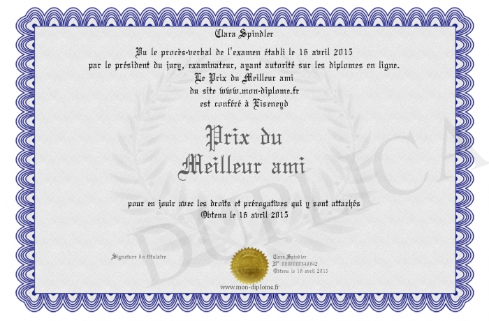 Envoyez par email votre Prix du Meilleur ami personalisé