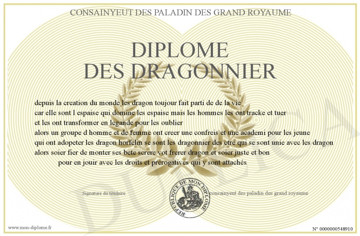 Envoyez par email votre Diplôme des dragonnier personalisé