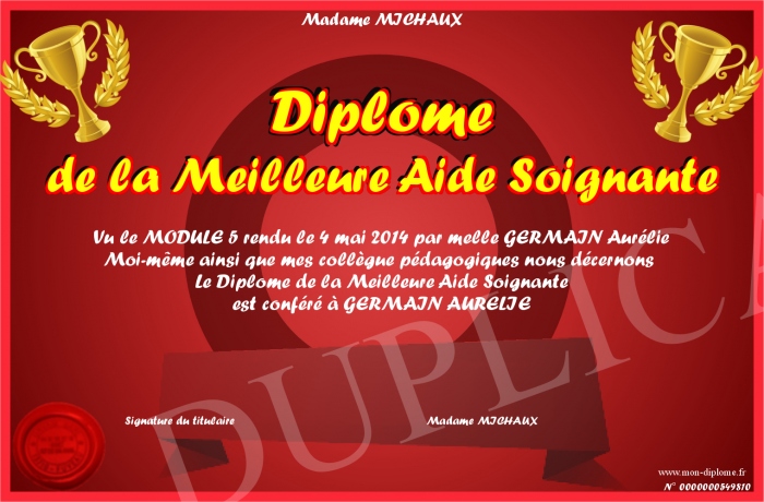 Envoyez par email votre Diplôme de la Meilleure Aide Soignante personalisé