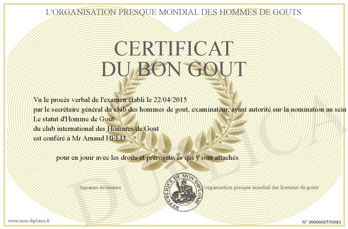 envoyé par le L'organisation presque mondial des hommes de gouts !