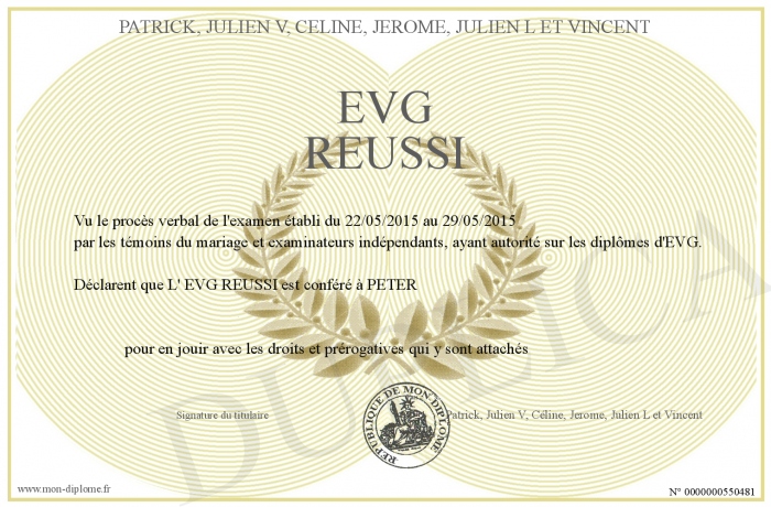 Envoyez par email votre EVG REUSSI personalisé