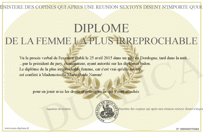 Envoyez par email votre Diplôme de la femme la plus irréprochable personalisé