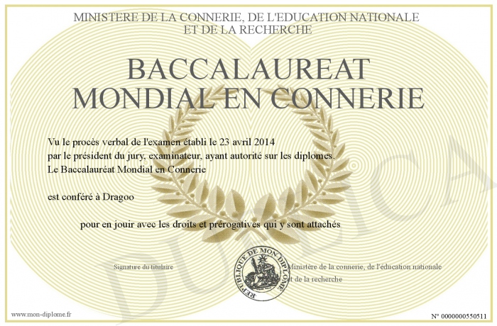 Envoyez par email votre Baccalauréat Mondial en Connerie personalisé