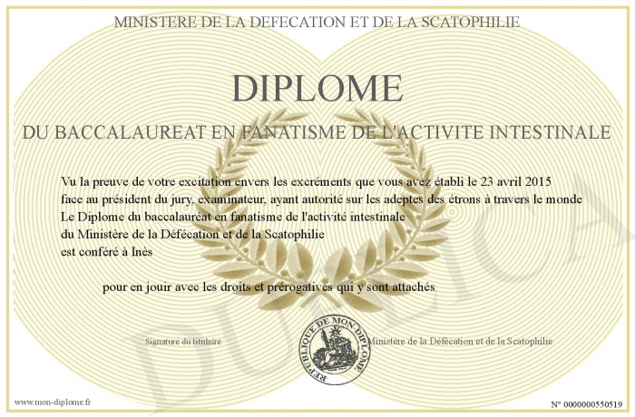 Envoyez par email votre Diplôme du baccalauréat en fanatisme de l'activité intestinale personalisé