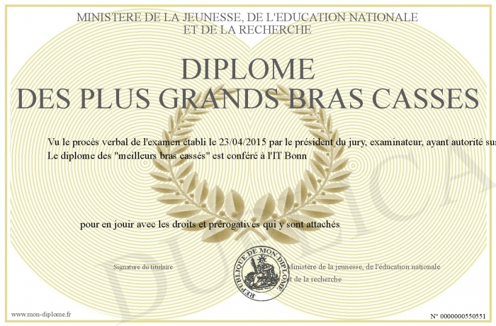 Envoyez par email votre Diplôme des plus grands Bras Cassés personalisé