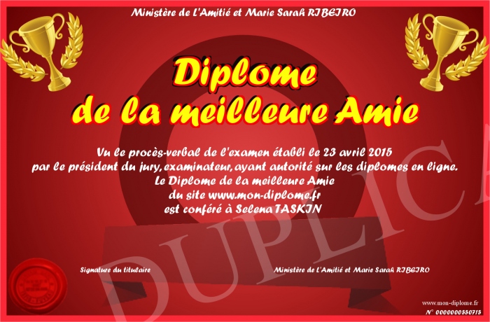 Envoyez par email votre Diplome de la meilleure Amie personalisé