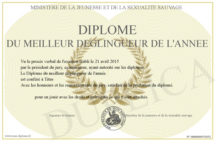 Envoyez par email votre Diplôme du meilleur déglingueur de l'année personalisé