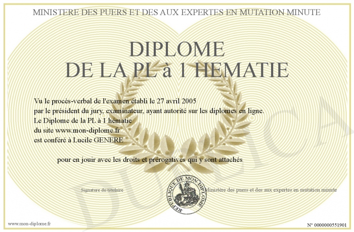 Envoyez par email votre Diplôme de la PL à 1 hématie personalisé