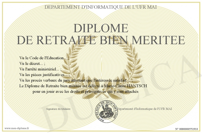 Envoyez par email votre Diplôme de Retraite bien méritée personalisé