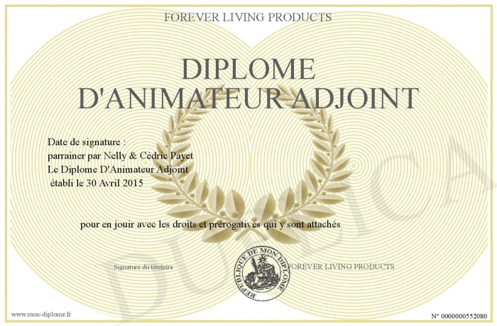 Envoyez par email votre Diplôme d'animateur adjoint personalisé