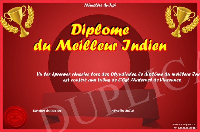 Envoyez par email votre Diplôme du Meilleur Indien personalisé