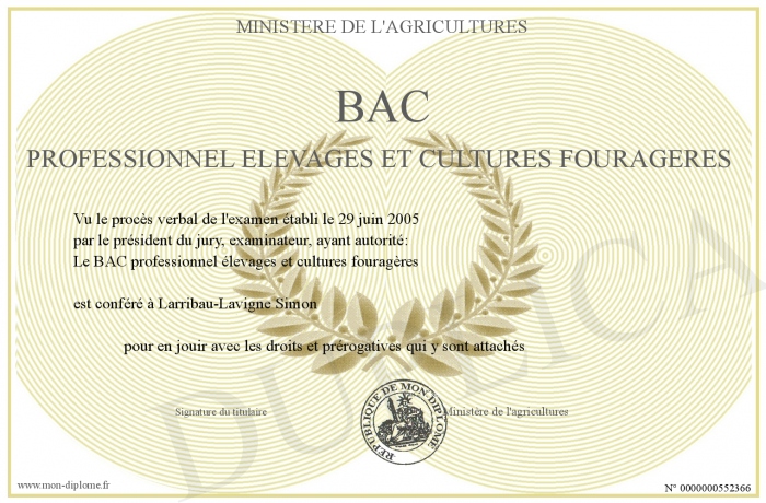 Envoyez par email votre BAC professionnel élevages et cultures fouragères personalisé