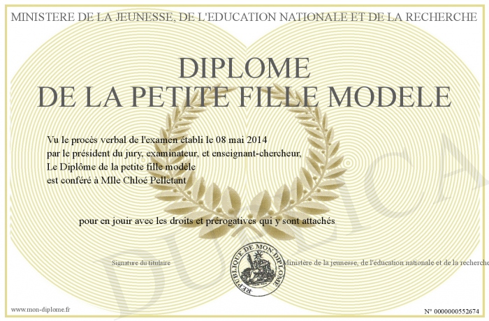 Envoyez par email votre Diplôme de la petite fille modèle personalisé