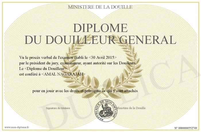 Envoyez par email votre Diplôme du Douilleur général personalisé