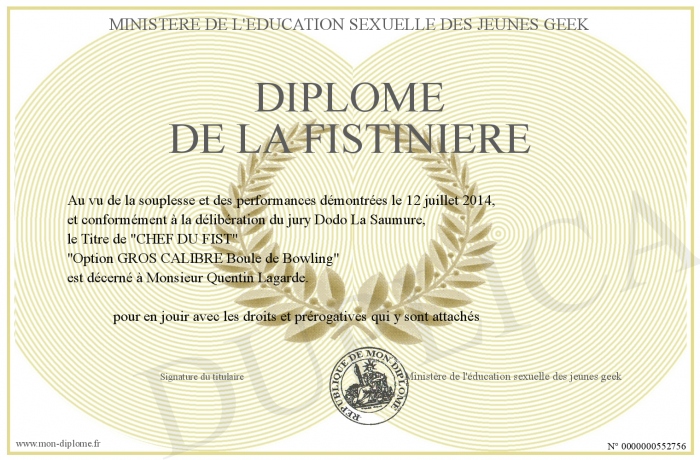 Envoyez par email votre Diplôme de la Fistinière personalisé