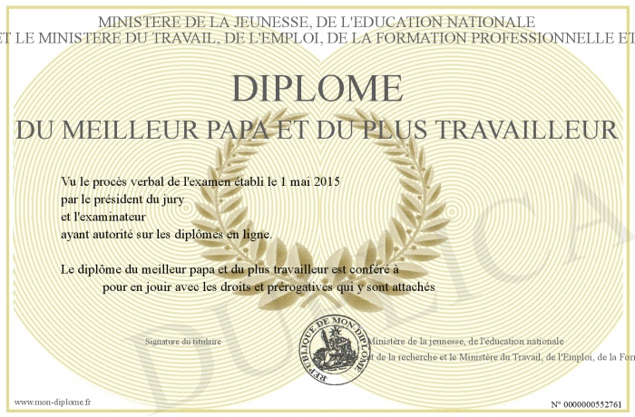 Envoyez par email votre Diplôme du Meilleur papa et du plus Travailleur personalisé