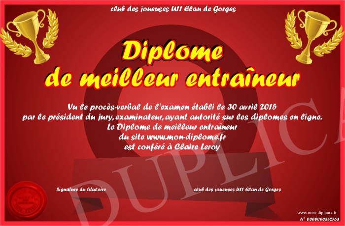 Envoyez par email votre Diplôme de meilleur entraîneur personalisé