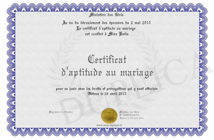Envoyez par email votre Certificat d'aptitude au mariage personalisé