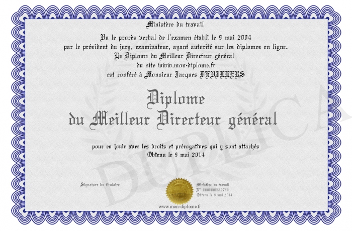 Envoyez par email votre Diplôme du Meilleur Directeur général personalisé